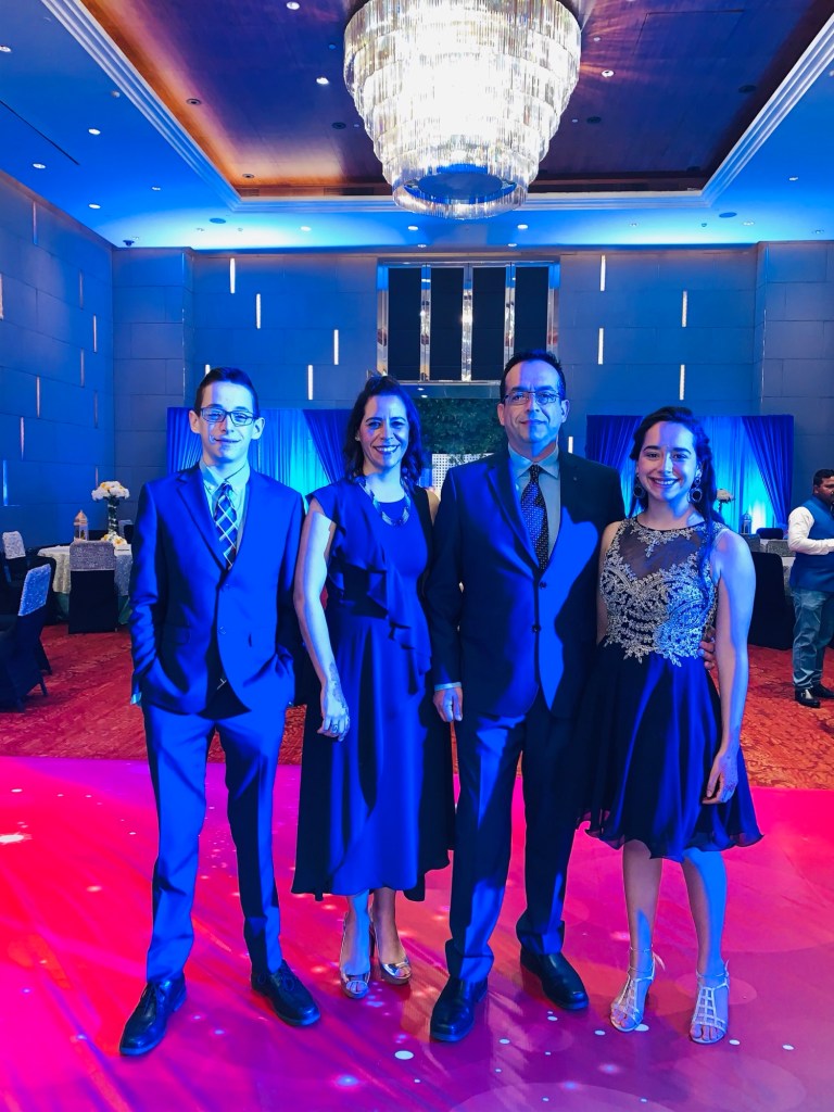 And finally, the last phase of this Indian wedding was the actual ceremony. After the Haldi ceremony, everyone finished off getting ready. Since we were part of the groom’s party, we had to walk to the bride’s hotel in a procession. The groom rode in a carriage pulled by white horses and the procession included the members of the the groom’s party and a hired band to play music during the procession. Once the procession had arrived to the bride’s hotel, the groom’s party entered the hotel. A couple minutes later, the bride entered with her procession dressed in a red sati. The bride and groom then went to an outside patio where they were married. After they were officially married, the party began. Once again, there was food, music, and dancing. After waiting for our turn, my family also got a picture with the bride and groom. My brother and I once again returned home early because we were extremely tired.